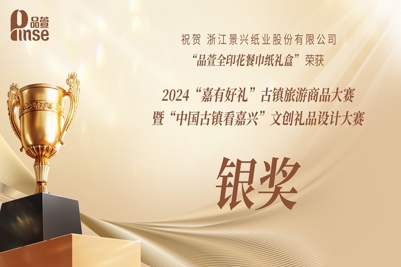 近日,景興紙業(yè)“品萱全印花餐巾紙禮盒” 在嘉興市文化廣電旅游局舉辦的2024“嘉有好禮”古鎮(zhèn)旅游商品大賽暨“中國古鎮(zhèn)看嘉興”文創(chuàng)禮品設計大賽上成功摘得銀獎!